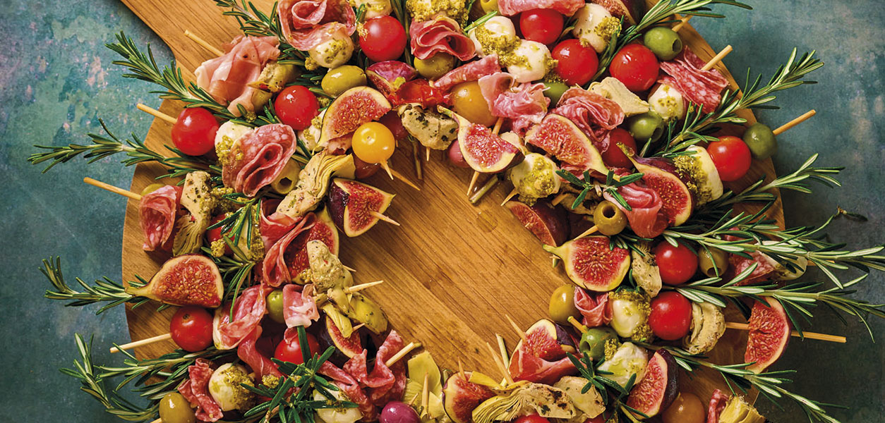 Here’s a selection of the mouth watering recipes featured in this issue to whet your appetite.- Antipasti Wreath